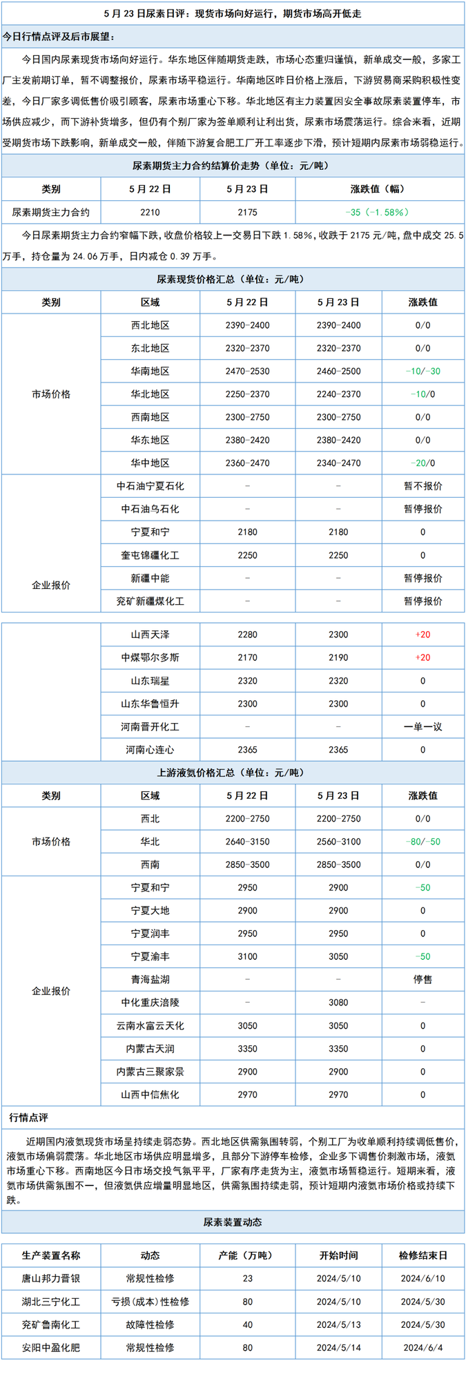 5月23日尿素日评:现货市场向好运行,期货市场高开低走